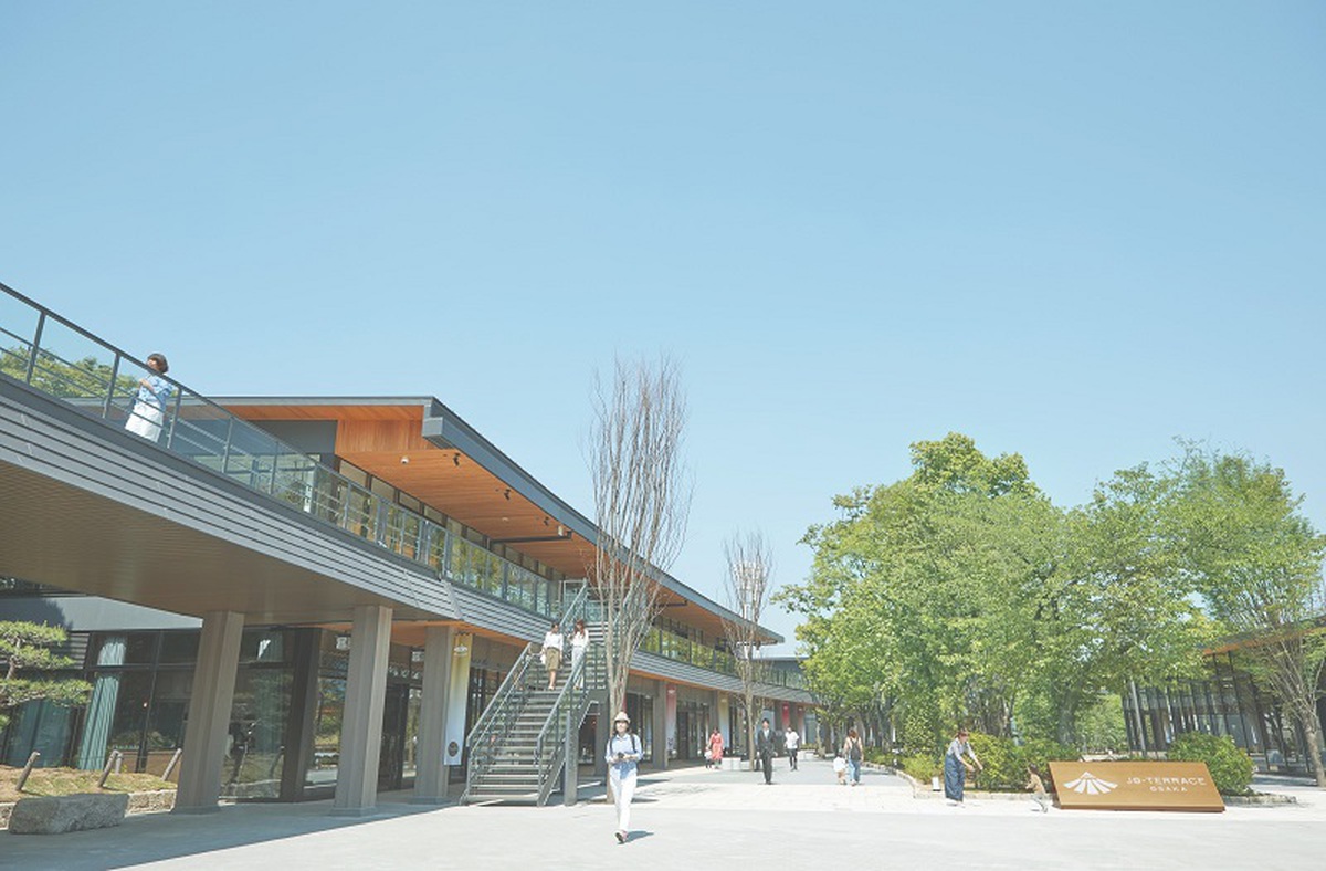 和モダンの落ち着いた空間は、なごみのテラス。公園に訪れる人々のにぎわいと自然の静寂が大阪の新しい日常をつくり出します。カフェで友達や仕事仲間と会話を楽しんだり、お気に入りのお店をのぞいてみたり・・・散歩するだけでも心地いい。大阪城公園の新しいエントランスが誕生しました。