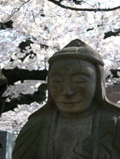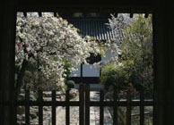 齢延寺と向かい合う銀山寺は、春の八重桜が見事。1591年(天正19)、大福寺と称したのが始まりで、その後、秀吉が自ら自分の画像を納めて修復し「宝樹山銀山寺」と命名した。今も旧門の瓦に五山桐紋が見られるのは、そのためだとか。「苦行仏」と呼ばれる、出家直後に厳しい修行をして悟りを開こうとする釈迦像がある。墓地には近松門左衛門の「心中宵庚申」の主人公、お千代・半兵衛の比翼塚も。