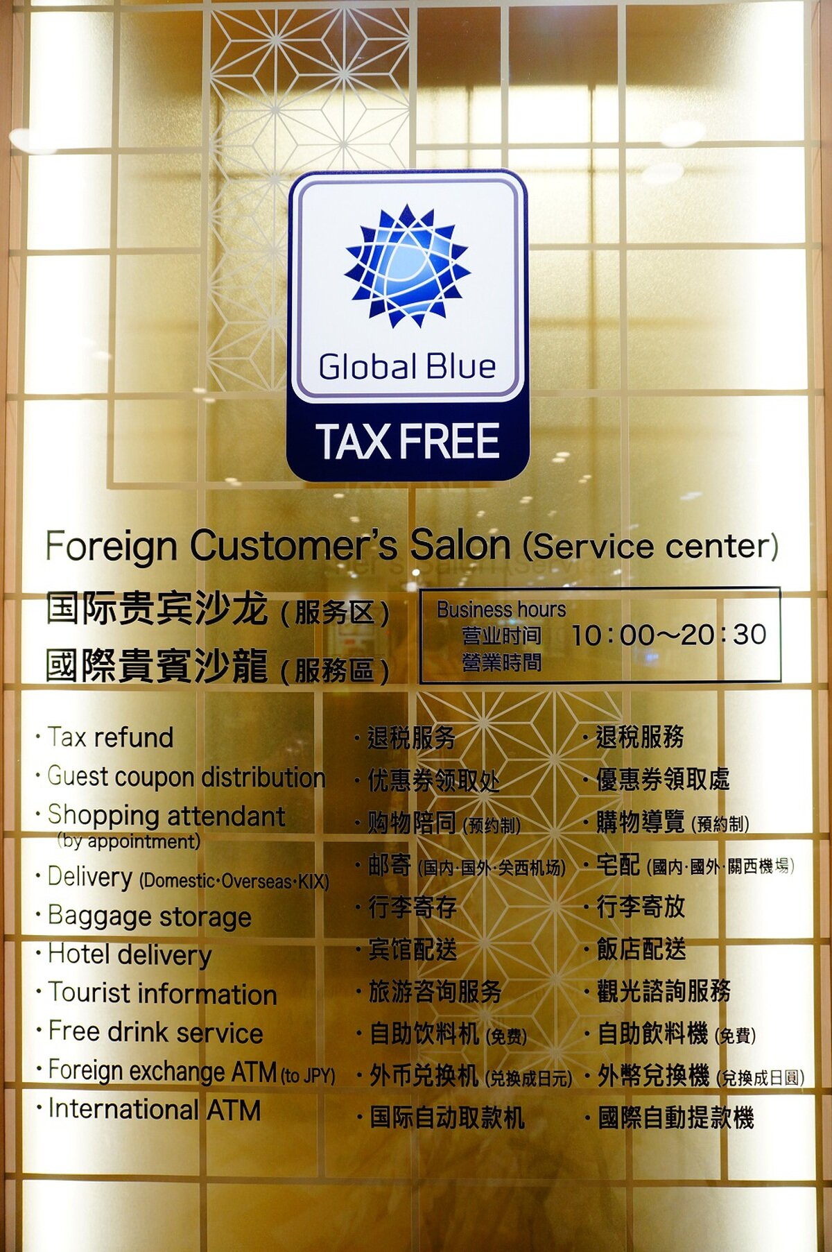 フォーリンカスタマーズサロンでは、免税手続きを中心に、ゲストクーポンの配布、手荷物お預り、海外配送、観光案内などの各種サービスを提供しております。